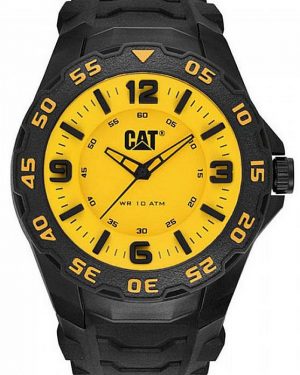Men’s CAT Caterpillar Groovy Yellow Silicone Band 45mm